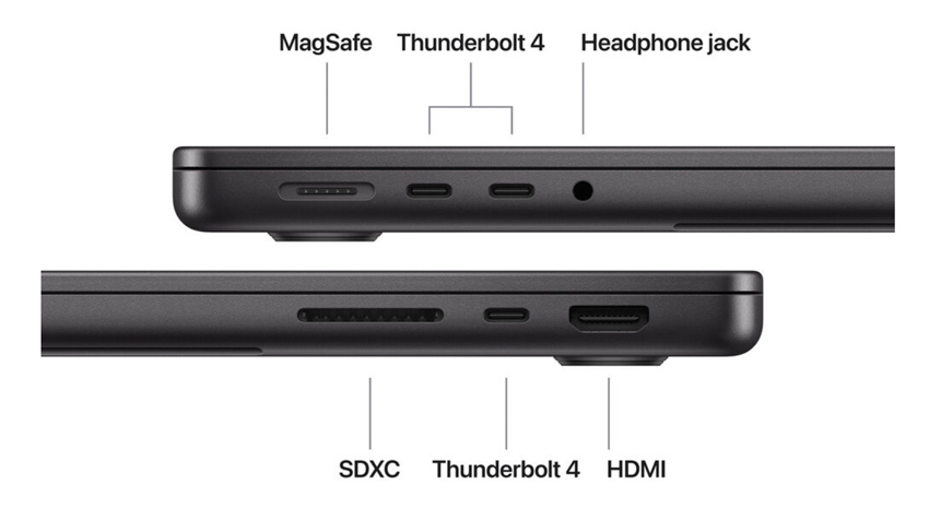 Users now benefit from an additional Thunderbolt 4 port (for a total of three), along with an HDMI port, an SDXC card slot, and the return of MagSafe 3 charging. A 3.5mm headphone jack remains for audio purists.